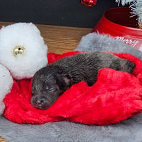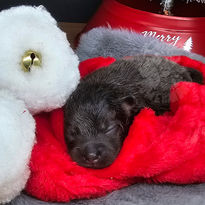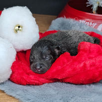 Myles was born at 12:40am and weighed in at 4.6oz. He's Black and Tan.