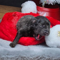 Wire was born 12:25am at 6.7oz. He's black and tan.